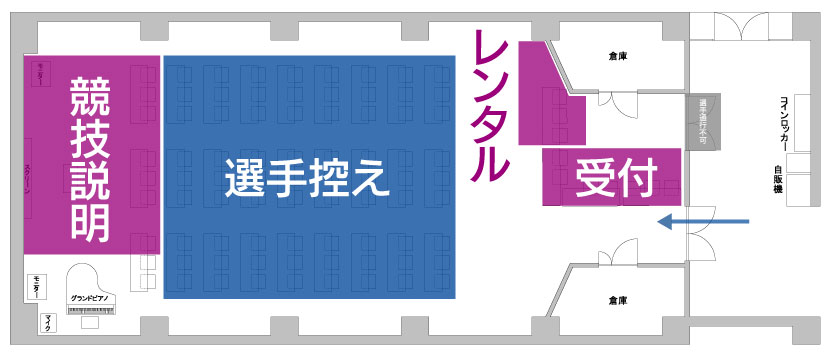 • 選手控え、競技説明、表彰式はこの部屋です。