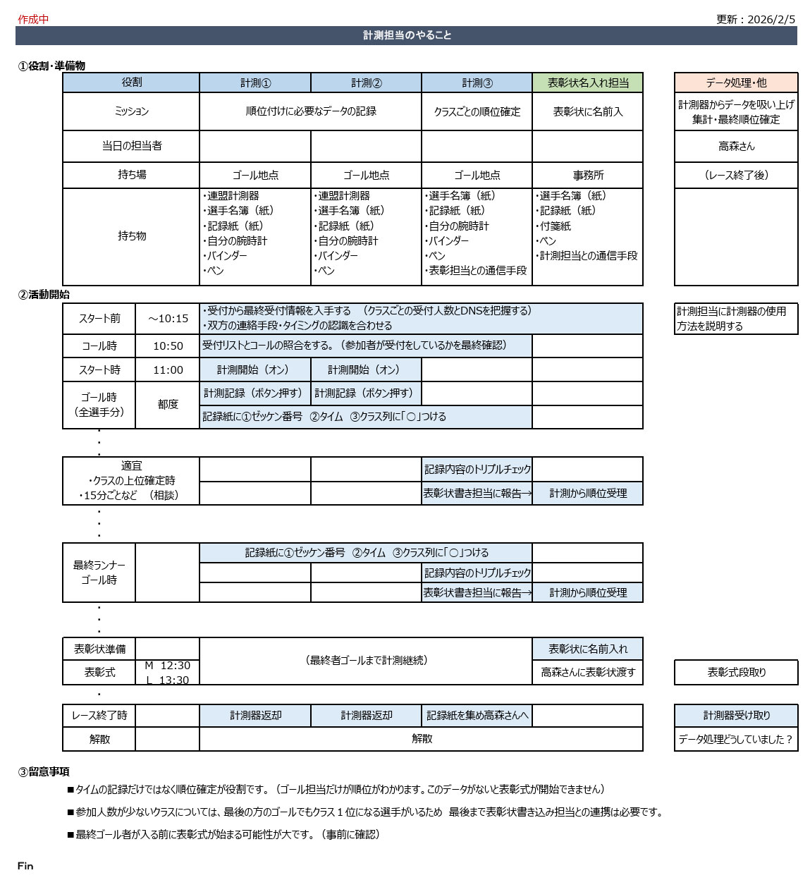 - 【計測用】ゴール着順記録(A4×白黒×5部)